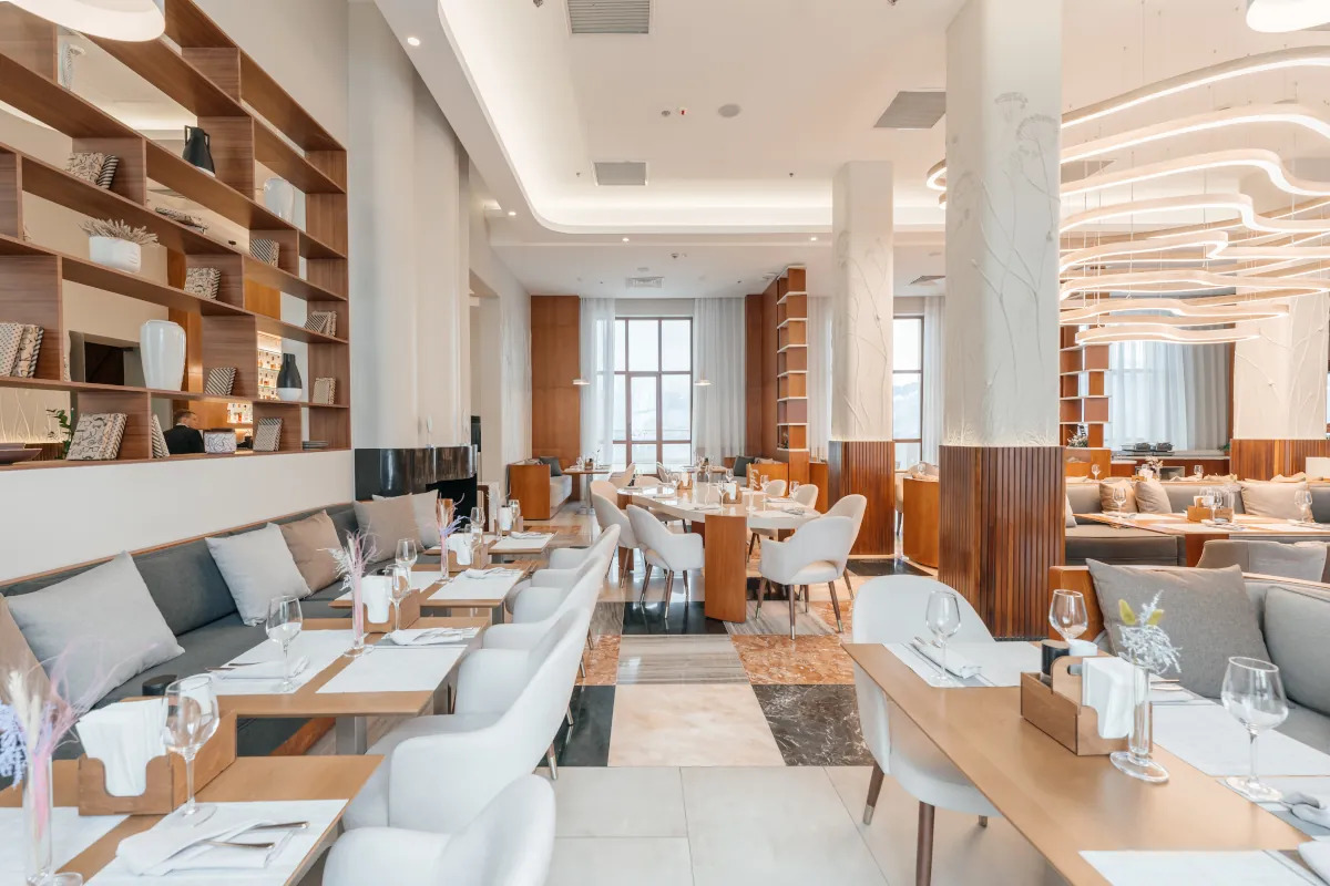 У ресторана собственная винная комната с большой коллекцией вин, а значит гурманы останутся довольны не только кухней. Это отличный подвод выбрать The Grill для семейного праздника и вместе с близкими провести незабываемый день в горах.